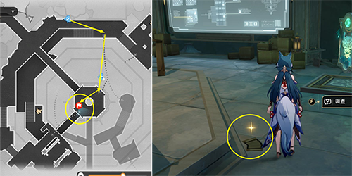2、接着传送1层,飞到下图位置调查后会获得一个纸条。