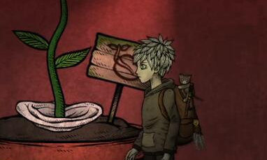 2、接着往右走给种子浇水获得玫瑰花。