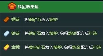 以上就是星露谷物语铁匠收集包收集攻略,玩家首先去挖矿获取到对应的原材料矿石,然后按照指定的要求将矿石放到熔炉,需要铜锭直接放就行,铁锭和金锭是要我们分别将铁矿石和黄金矿石放置后,还满足获得炼铁配方和炼金配方才能够打造完成,然后获取到一个熔炉。